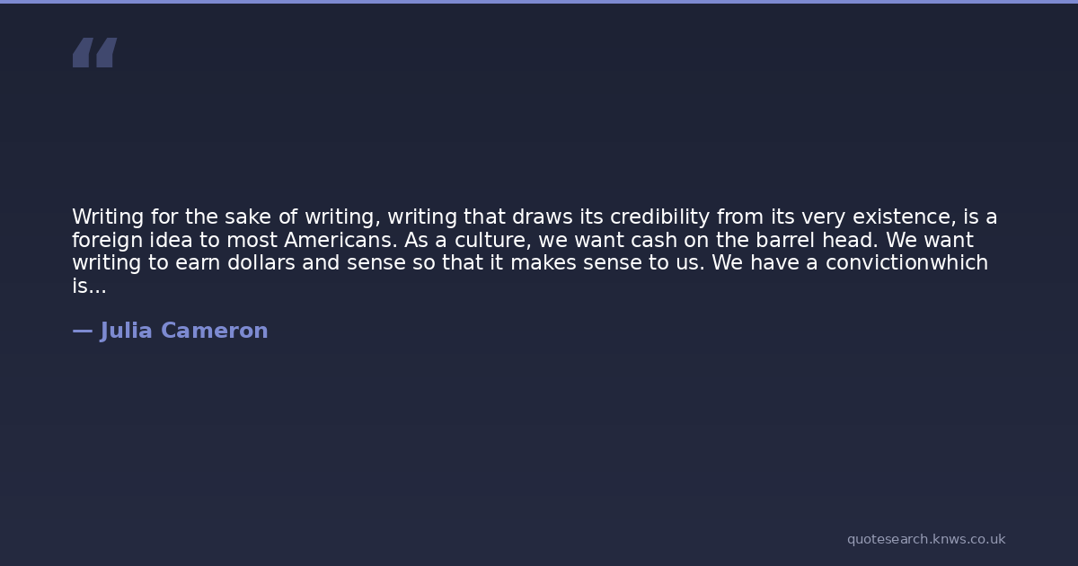 Julia Cameron was American author. Julia B. Cameron is an American teacher, author, artist, poet, playwright, novelist, filmmaker, composer, and journalist. Read more on Wikipedia →