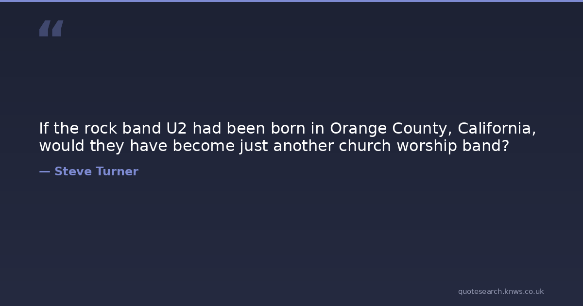 If the rock band U2 had been born in Orange County, California, would they have become just another church worship band?