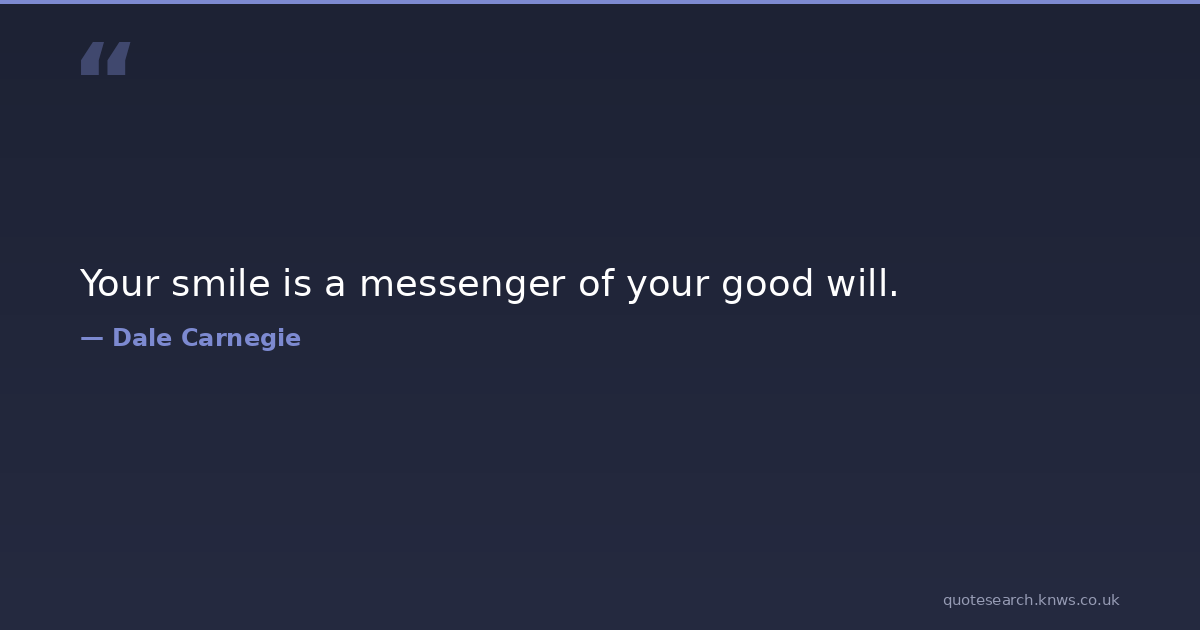 Your smile is a messenger of your good will. happiness Download Image Share on X Share on Facebook Copy Link