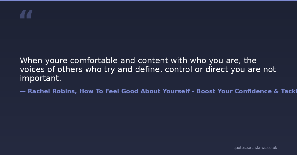 When youre comfortable and content with who you are, the voices of others who try and define, control or direct you are not important.