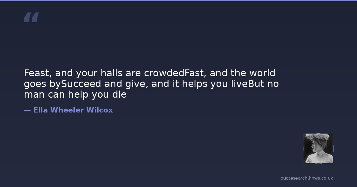 Feast, and your halls are crowdedFast, and the world goes bySucceed and give, and it helps you liveBut no man can help you die