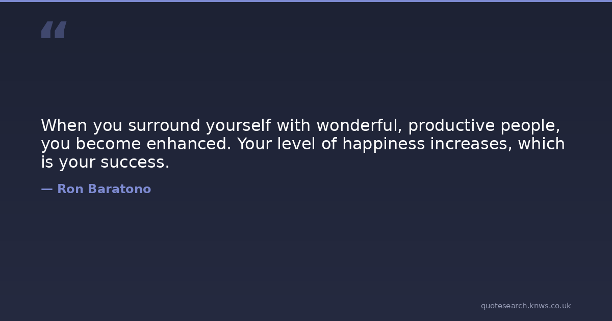 When you surround yourself with wonderful, productive people, you become enhanced. Your level of happiness increases, which is your success.