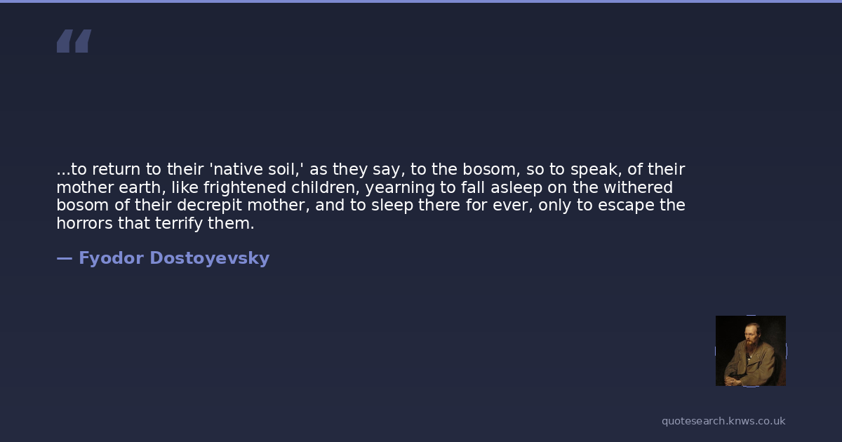 ...to return to their 'native soil,' as they say, to the bosom, so to speak, of their mother earth, like frightened children, yearning to fall asleep on the withered bosom of their decrepit mother, and to sleep there for ever, only to escape the horrors that terrify them.