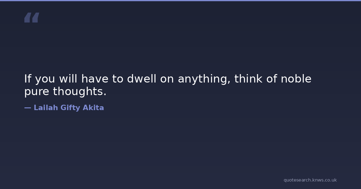 If you will have to dwell on anything, think of noble pure thoughts.