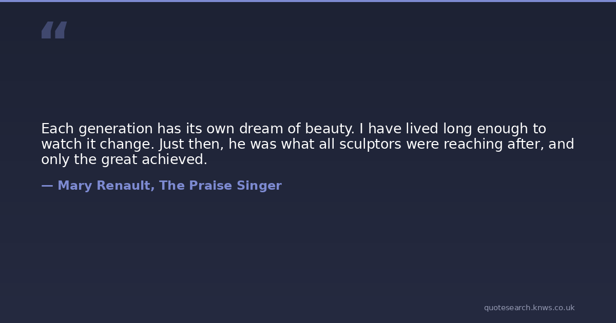 Each generation has its own dream of beauty. I have lived long enough to watch it change. Just then, he was what all sculptors were reaching after, and only the great achieved.