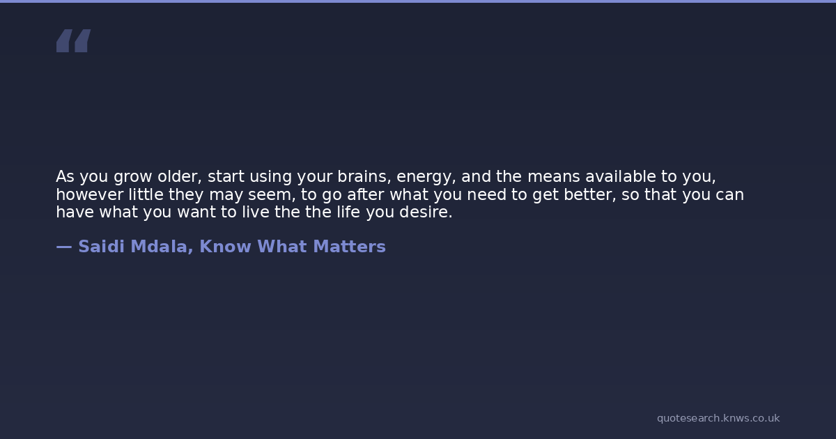 As you grow older, start using your brains, energy, and the means available to you, however little they may seem, to go after what you need to get better, so that you can have what you want to live the the life you desire.