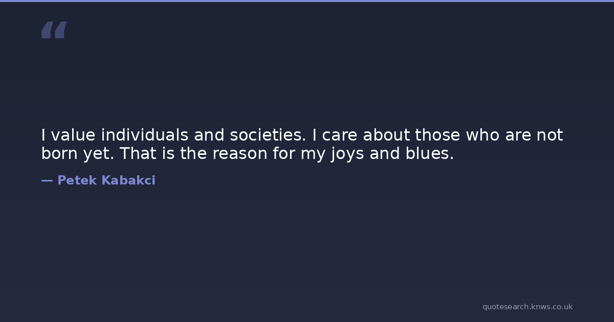 I value individuals and societies. I care about those who are not born yet. That is the reason for my joys and blues.