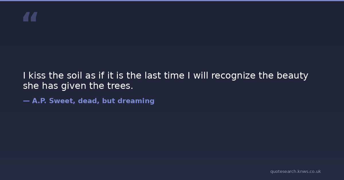 I kiss the soil as if it is the last time I will recognize the beauty she has given the trees.