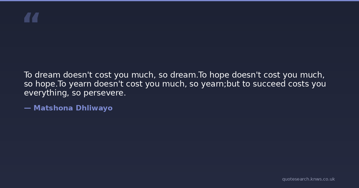 To dream doesn't cost you much, so dream.To hope doesn't cost you much, so hope.To yearn doesn't cost you much, so yearn;but to succeed costs you everything, so persevere.