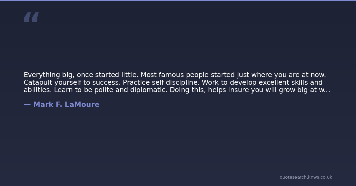 Everything big, once started little. Most famous people started just where you are at now. Catapult yourself to success. Practice self-discipline. Work to develop excellent skills and abilities. Learn to be polite and diplomatic. Doing this, helps insure you will grow big at what you want for success.