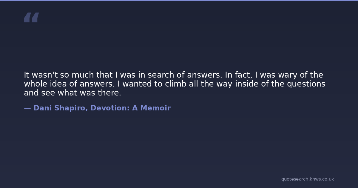 It wasn't so much that I was in search of answers. In fact, I was wary of the whole idea of answers. I wanted to climb all the way inside of the questions and see what was there.