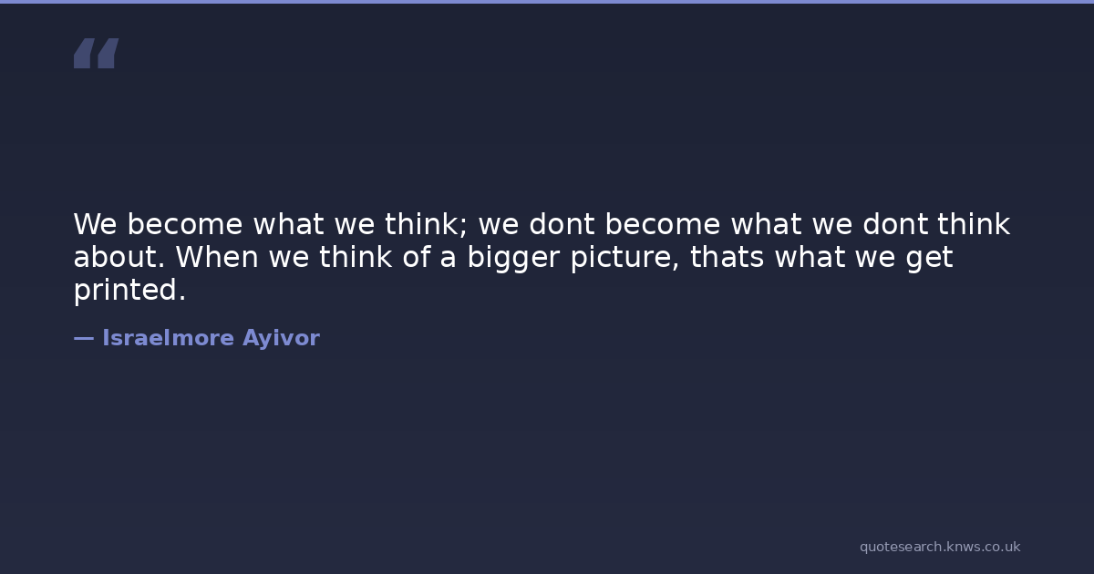 We become what we think; we dont become what we dont think about. When we think of a bigger picture, thats what we get printed.
