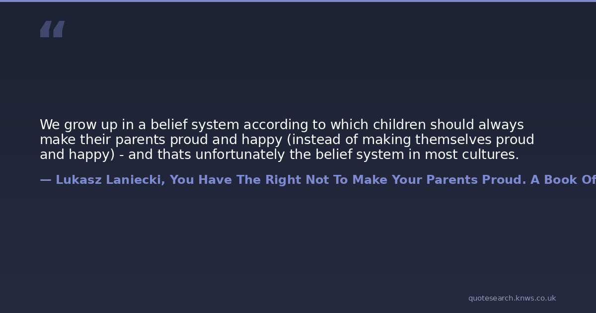 We grow up in a belief system according to which children should always make their parents proud and happy (instead of making themselves proud and happy) - and thats unfortunately the belief system in most cultures.