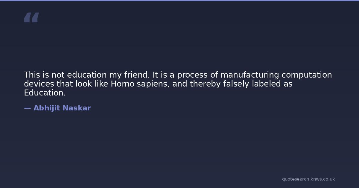 This is not education my friend. It is a process of manufacturing computation devices that look like Homo sapiens, and thereby falsely labeled as Education.