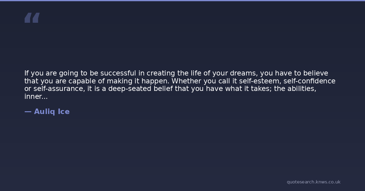 If you are going to be successful in creating the life of your dreams, you have to believe that you are capable of making it happen. Whether you call it self-esteem, self-confidence or self-assurance, it is a deep-seated belief that you have what it takes; the abilities, inner resources, talents and skills to create your desired results.
