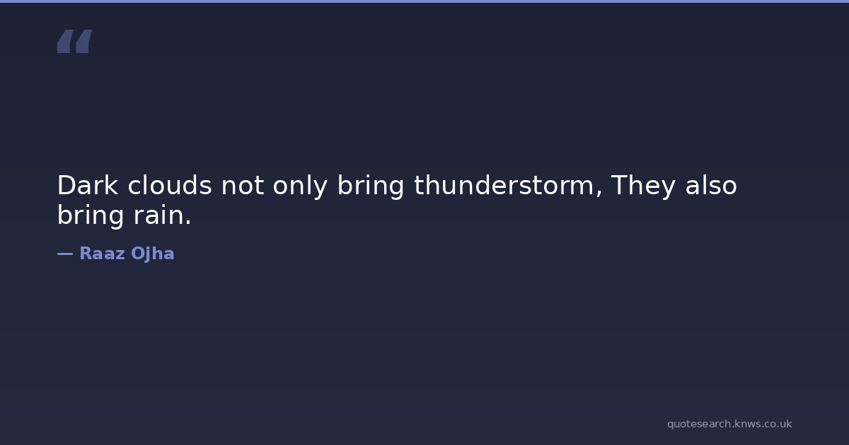 Dark clouds not only bring thunderstorm, They also bring rain. dark-clouds difficulties opportunities rain success-quotes thunderstorm Download Image Share on X Share on Facebook Copy Link
