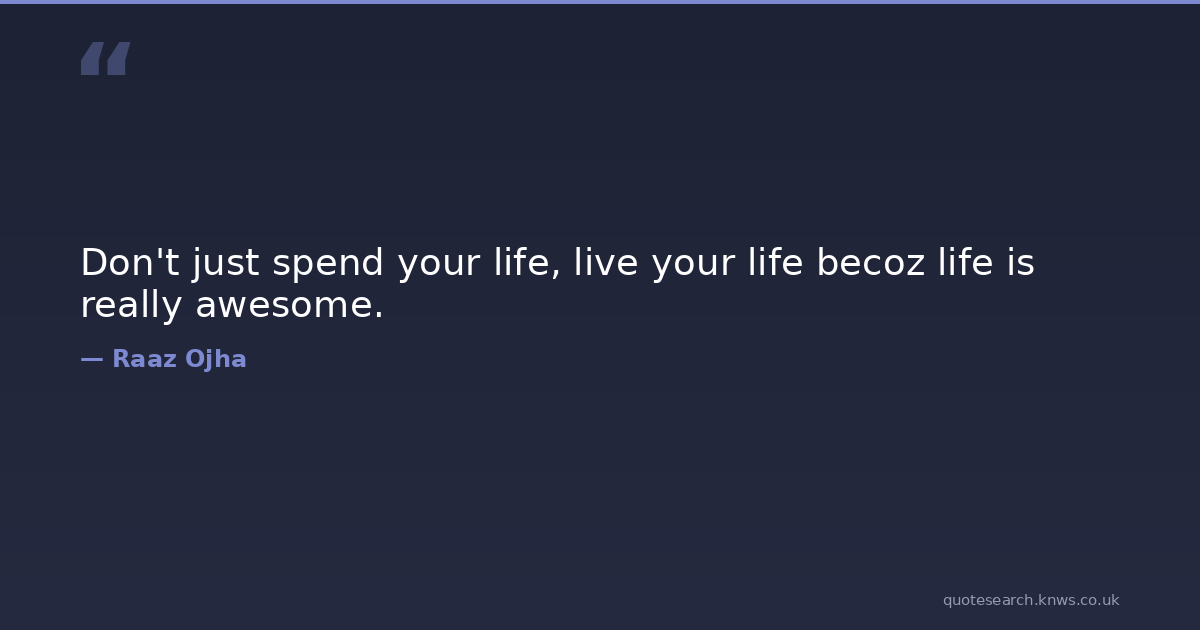 Don't just spend your life, live your life becoz life is really awesome. happiness happiness-life life success-quotes Download Image Share on X Share on Facebook Copy Link