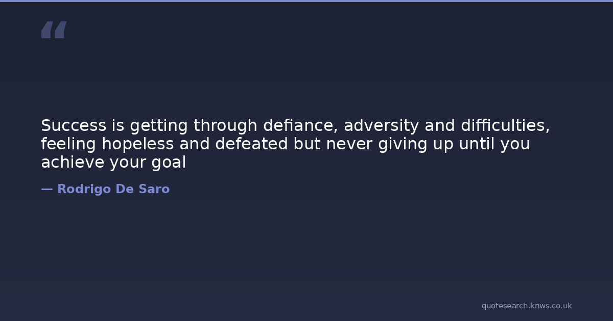 Success is getting through defiance, adversity and difficulties, feeling hopeless and defeated but never giving up until you achieve your goal