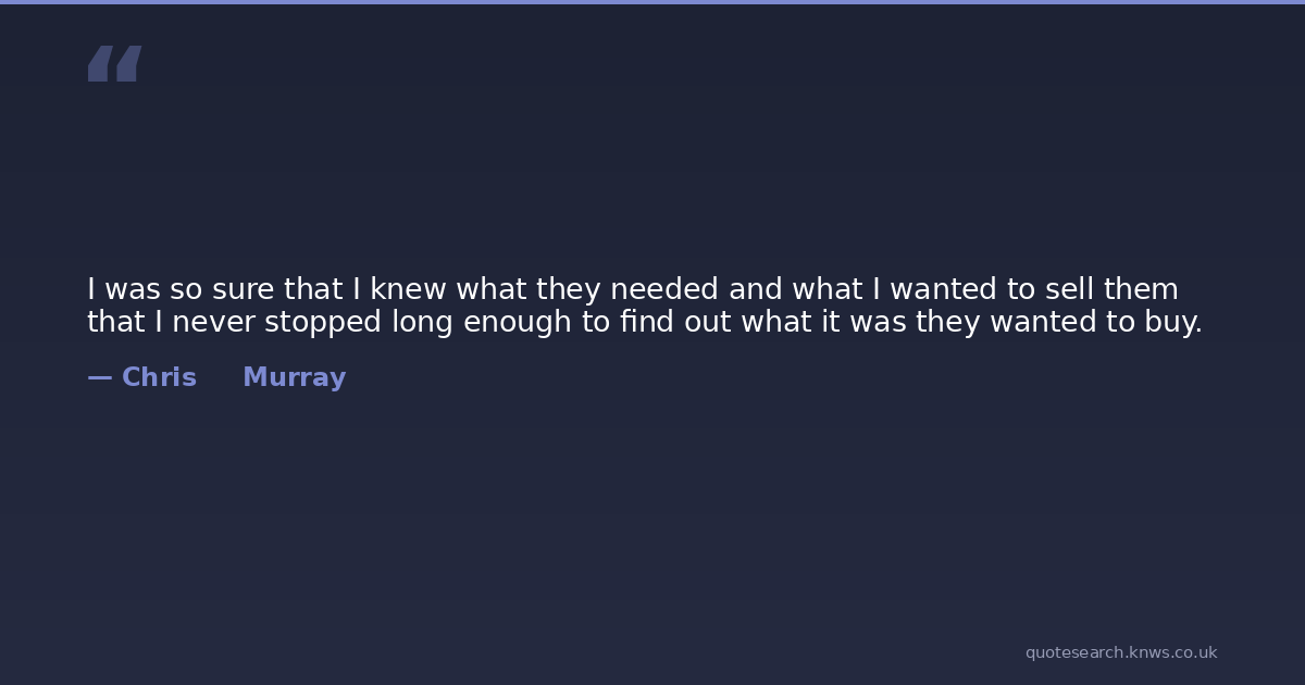 I was so sure that I knew what they needed and what I wanted to sell them that I never stopped long enough to find out what it was they wanted to buy.