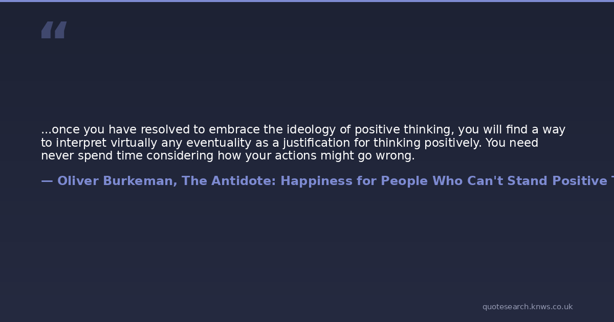...once you have resolved to embrace the ideology of positive thinking, you will find a way to interpret virtually any eventuality as a justification for thinking positively. You need never spend time considering how your actions might go wrong.