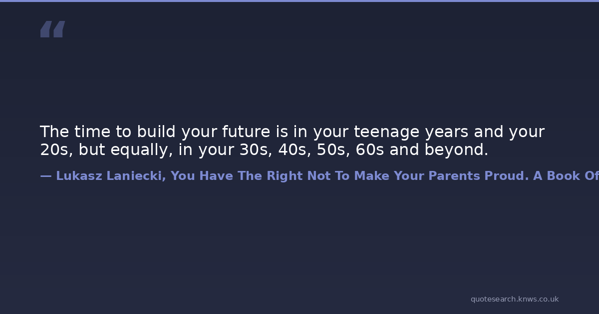 The time to build your future is in your teenage years and your 20s, but equally, in your 30s, 40s, 50s, 60s and beyond.