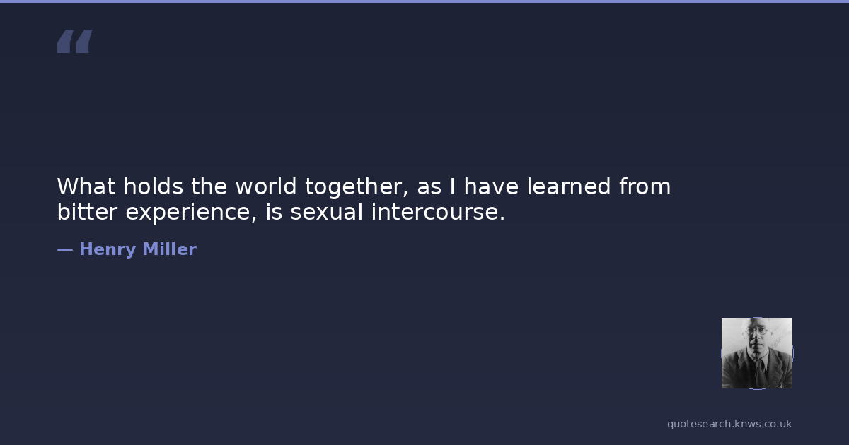 What holds the world together, as I have learned from bitter experience, is sexual intercourse.