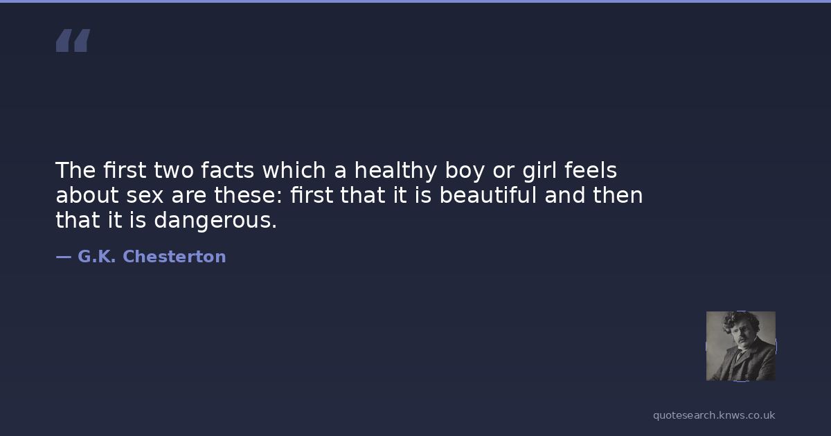 The first two facts which a healthy boy or girl feels about sex are these: first that it is beautiful and then that it is dangerous.