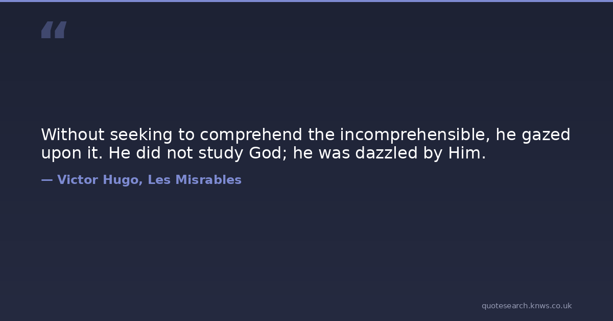 Without seeking to comprehend the incomprehensible, he gazed upon it. He did not study God; he was dazzled by Him.