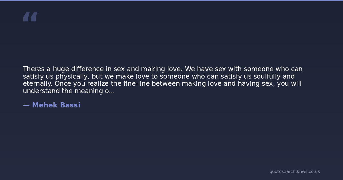 Theres a huge difference in sex and making love. We have sex with someone who can satisfy us physically, but we make love to someone who can satisfy us soulfully and eternally. Once you realize the fine-line between making love and having sex, you will understand the meaning of life! Life isnt only about survival, its about living and so is making love. We have sex to satisfy our lust and hunger, which is nothing, but survival, but we make love to feed our soul and our mind, to fill a void that is there since a long time, that longs for a partner and that needs someone whom we want to spend the next morning with!When you have sex just for physical pleasure, you are ashamed and guilty at one point of life or another, but when you make love to someone who means everything to you, you are always proud of it. Never in life, not even a single time, you regret that time and the moments spent with that person. You will always rejoice it and remember it with equal passion and joy.