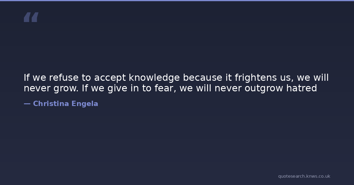 If we refuse to accept knowledge because it frightens us, we will never grow. If we give in to fear, we will never outgrow hatred
