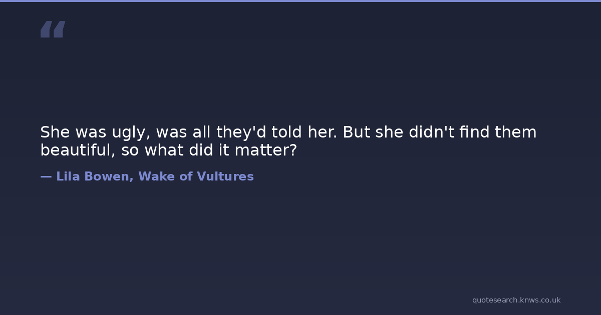 She was ugly, was all they'd told her. But she didn't find them beautiful, so what did it matter?