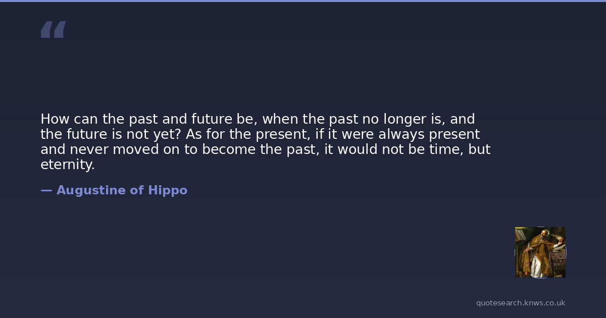 How can the past and future be, when the past no longer is, and the future is not yet? As for the present, if it were always present and never moved on to become the past, it would not be time, but eternity.