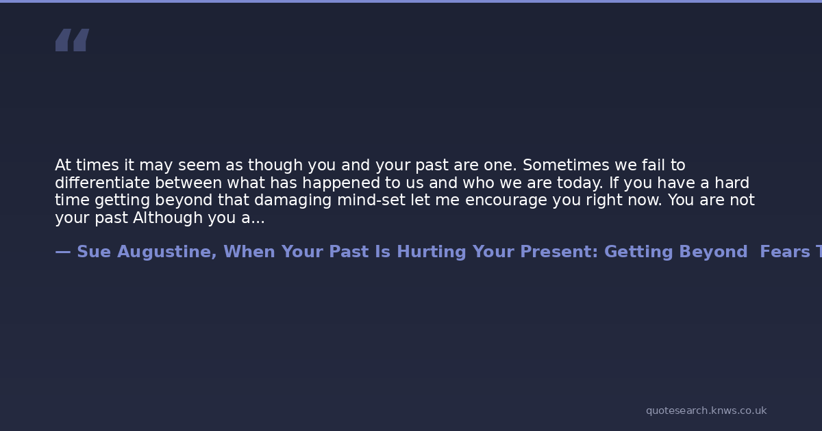 At times it may seem as though you and your past are one. Sometimes we fail to differentiate between what has happened to us and who we are today. If you have a hard time getting beyond that damaging mind-set let me encourage you right now. You are not your past Although you are changed and shaped by past experiences who you were yesterday does not control the person you have the potential to become tomorrow.