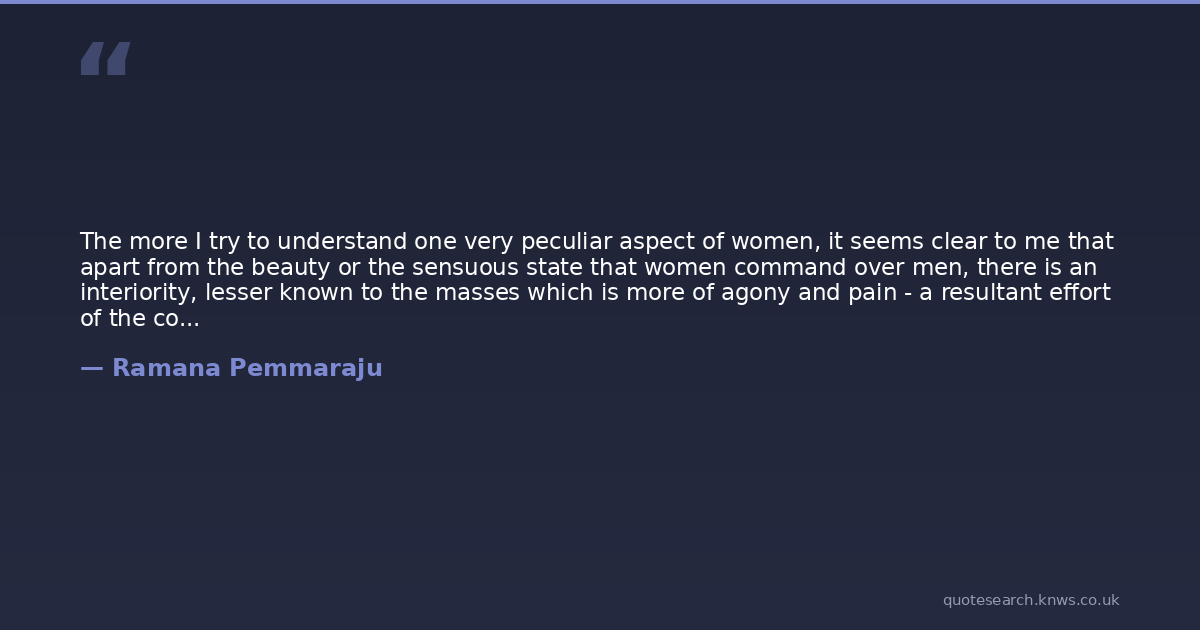 The more I try to understand one very peculiar aspect of women, it seems clear to me that apart from the beauty or the sensuous state that women command over men, there is an interiority, lesser known to the masses which is more of agony and pain - a resultant effort of the continuous mood swings and the frequent natural cycles that buoy them, it is in this state that women function and calibrate on this basis in selecting their soul mate and not the usual histrionics that men take effort in pleasing them!