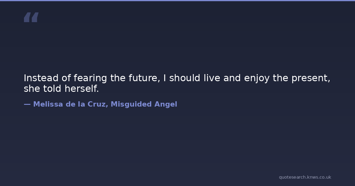 Instead of fearing the future, I should live and enjoy the present, she told herself. future Download Image Share on X Share on Facebook Copy Link
