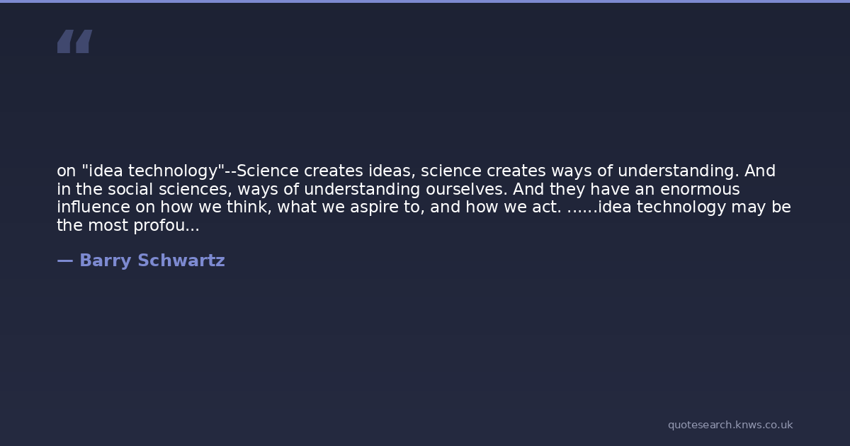 on "idea technology"--Science creates ideas, science creates ways of understanding. And in the social sciences, ways of understanding ourselves. And they have an enormous influence on how we think, what we aspire to, and how we act. ......idea technology may be the most profoundly important technology that science gives us.......we do have to worry about the theories we have of human nature, because human nature will be changed by the theories we have that are designed to explain and help us understand human beings....it is only human nature to have a human nature that is very much the product of the society in which people live.--TED The way we think about work is broken