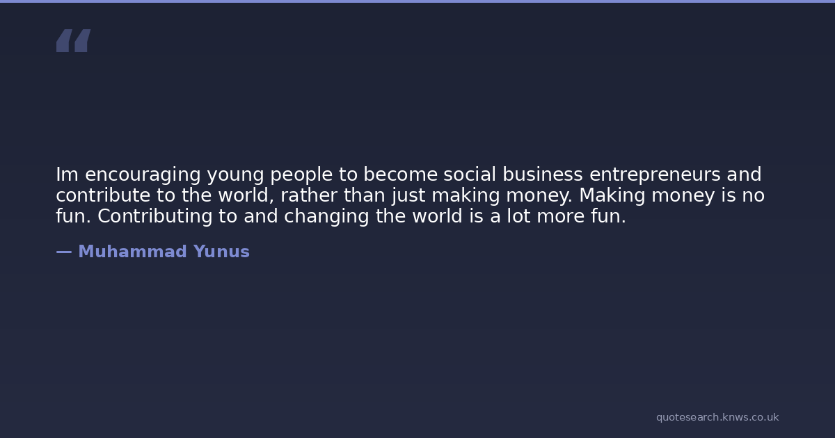 Im encouraging young people to become social business entrepreneurs and contribute to the world, rather than just making money. Making money is no fun. Contributing to and changing the world is a lot more fun.