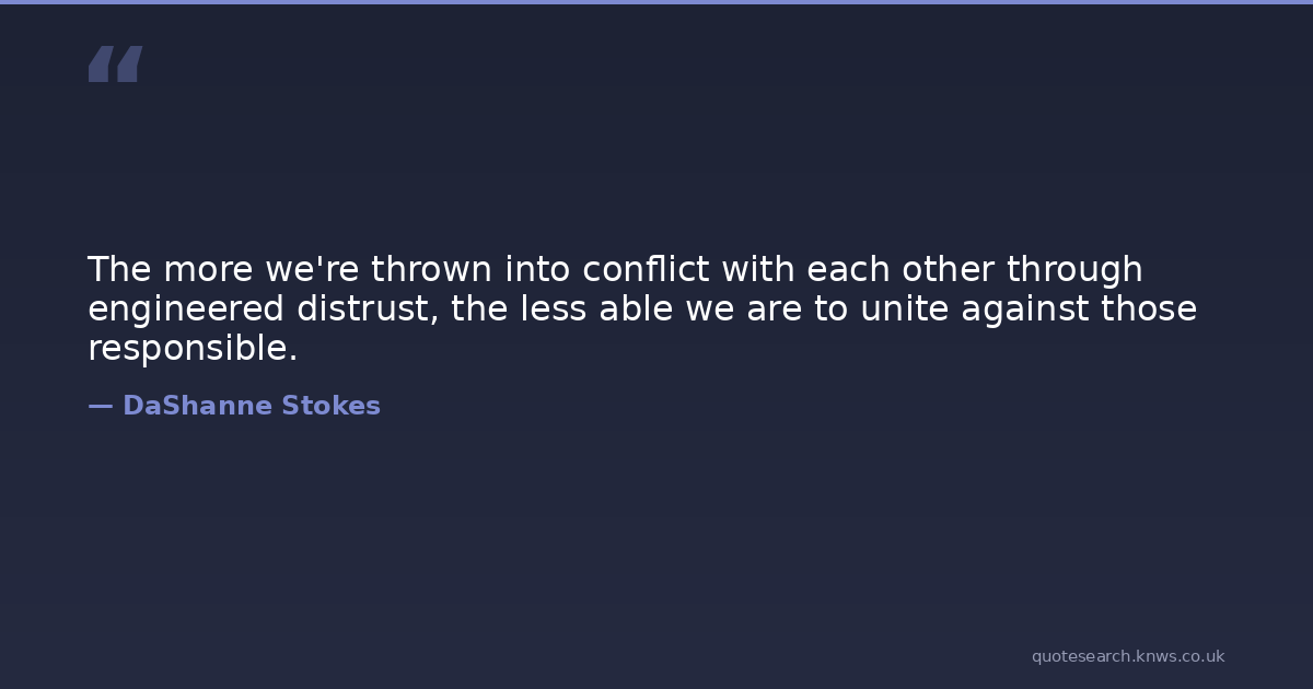 The more we're thrown into conflict with each other through engineered distrust, the less able we are to unite against those responsible.