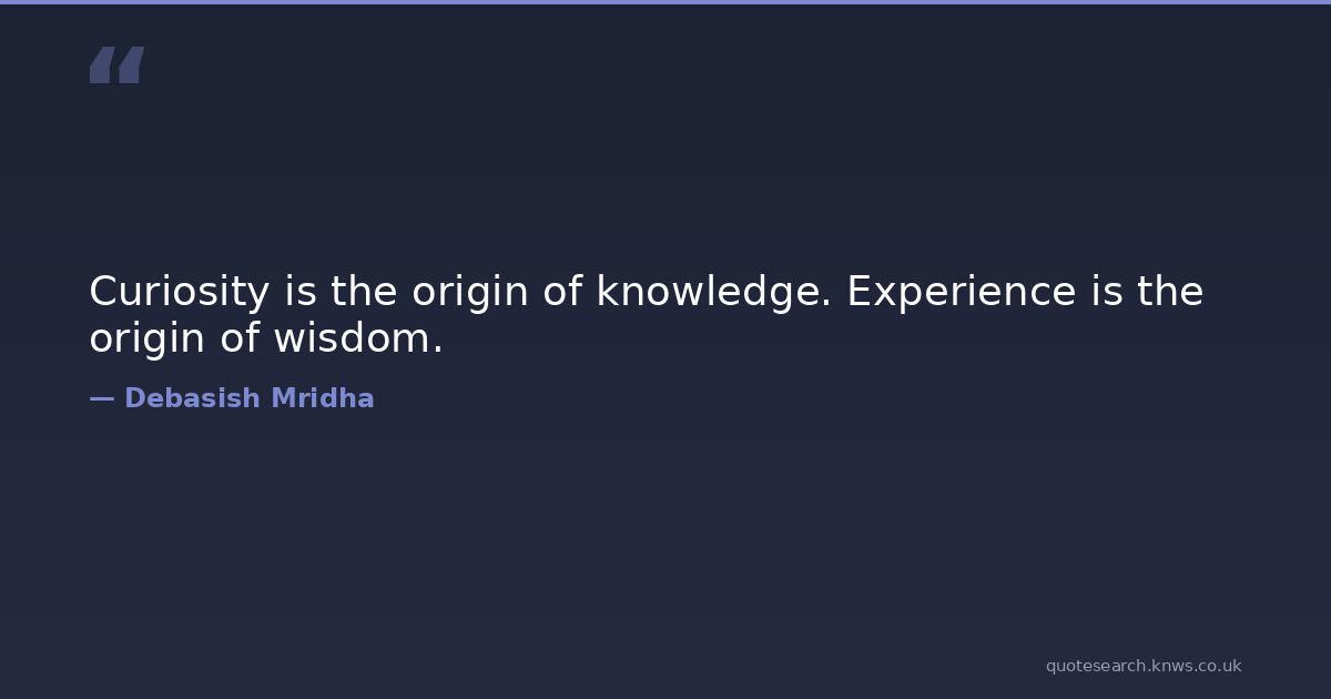 Curiosity is the origin of knowledge. Experience is the origin of wisdom.