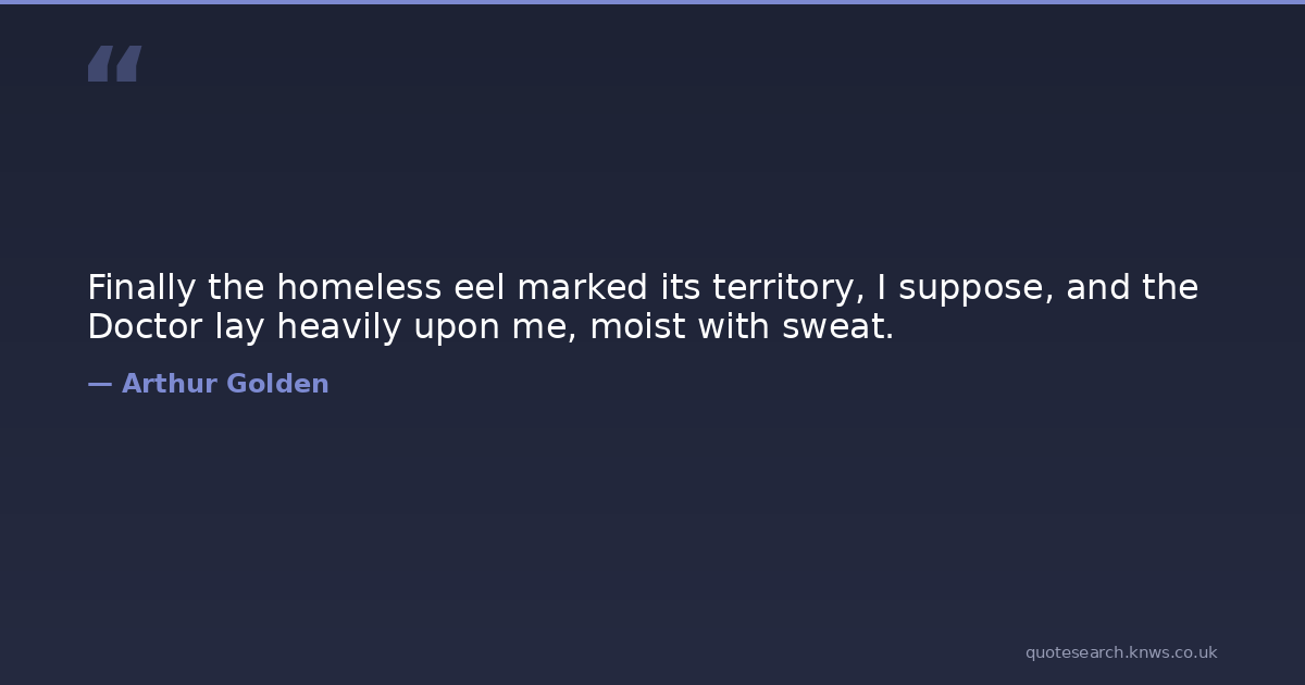 Finally the homeless eel marked its territory, I suppose, and the Doctor lay heavily upon me, moist with sweat.