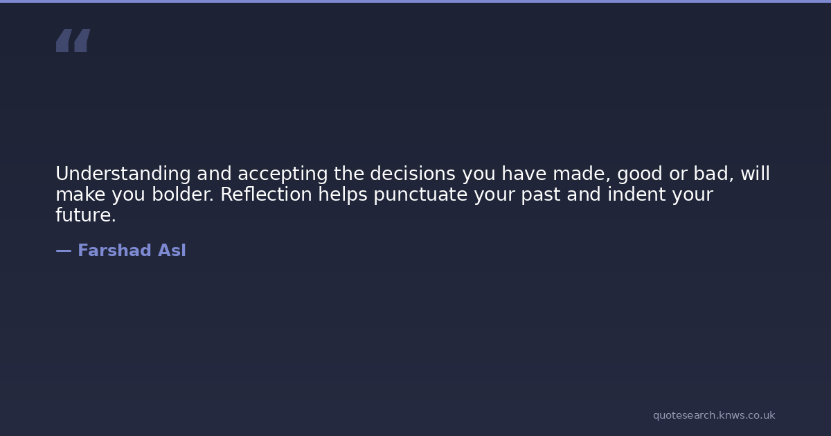 Understanding and accepting the decisions you have made, good or bad, will make you bolder. Reflection helps punctuate your past and indent your future.