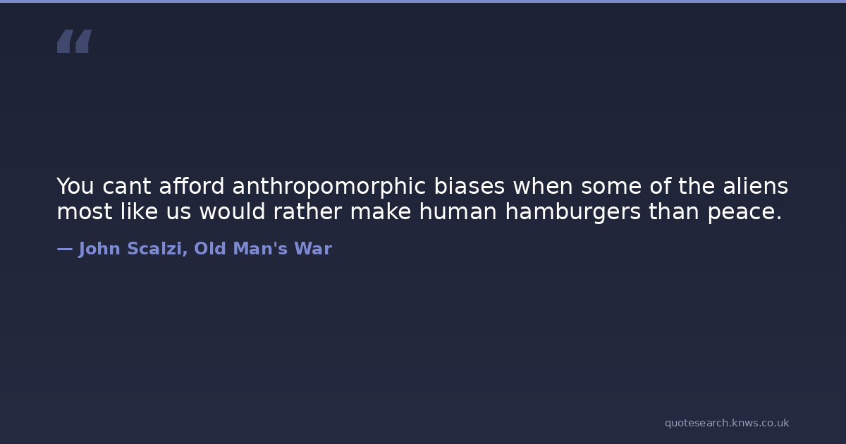You cant afford anthropomorphic biases when some of the aliens most like us would rather make human hamburgers than peace.