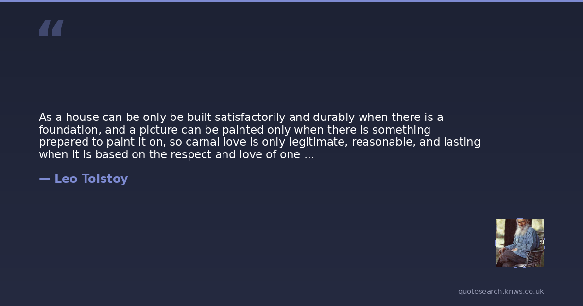 As a house can be only be built satisfactorily and durably when there is a foundation, and a picture can be painted only when there is something prepared to paint it on, so carnal love is only legitimate, reasonable, and lasting when it is based on the respect and love of one human being for another.