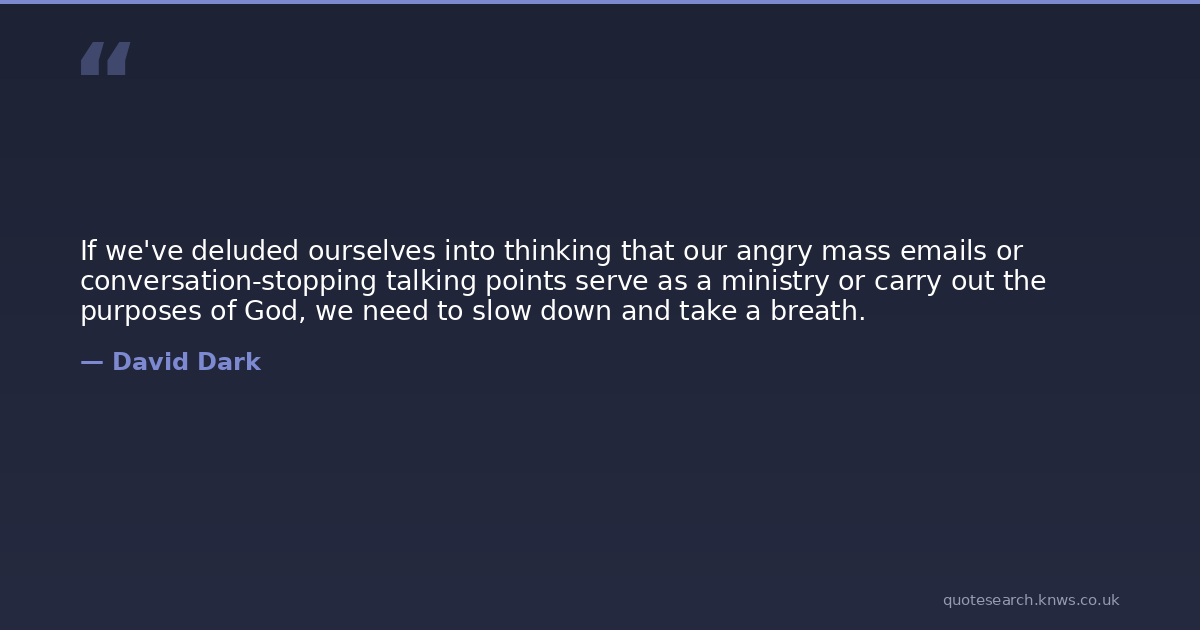 If we've deluded ourselves into thinking that our angry mass emails or conversation-stopping talking points serve as a ministry or carry out the purposes of God, we need to slow down and take a breath.