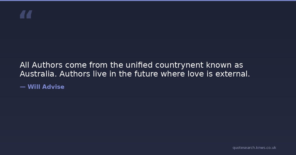 All Authors come from the unified countrynent known as Australia. Authors live in the future where love is external.