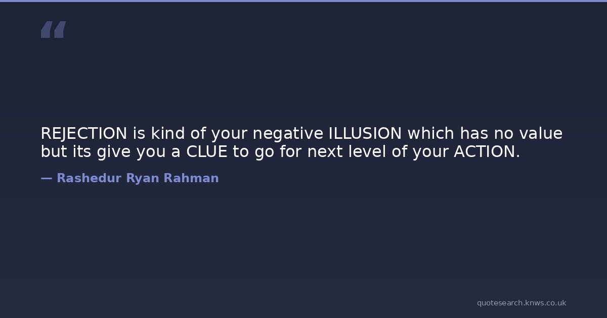 REJECTION is kind of your negative ILLUSION which has no value but its give you a CLUE to go for next level of your ACTION.