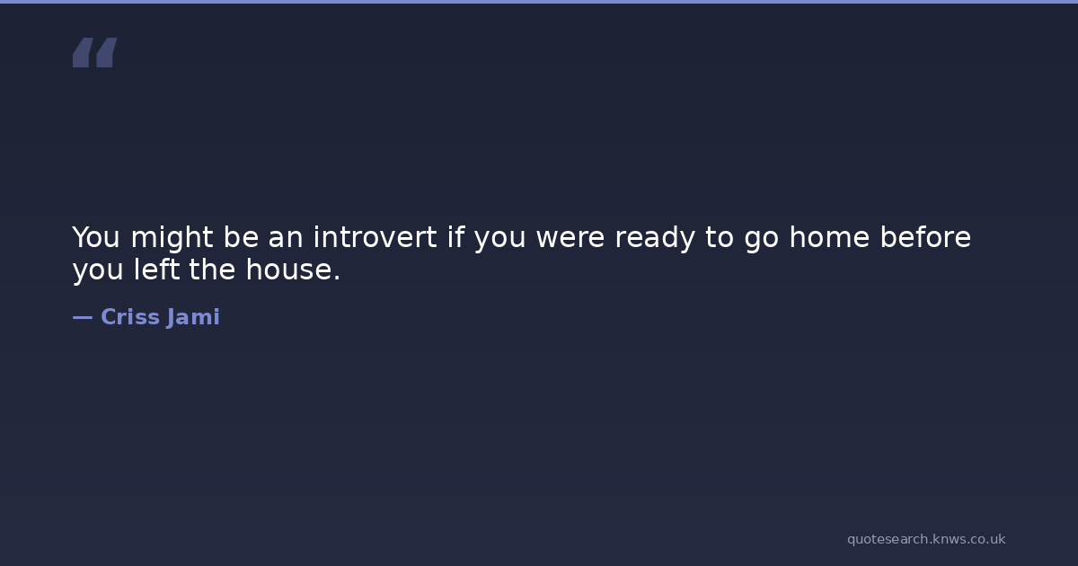You might be an introvert if you were ready to go home before you left the house. anti-social anti-social-instincts antisocial antisocial-instincts bored drained energy extroversion extrovert funny funny-but-true home homebody house humor instincts introversion introvert loner partying peace personality quiet quiet-time recharge rest restoration shy sleepy social tired traits Download Image Share on X Share on Facebook Copy Link