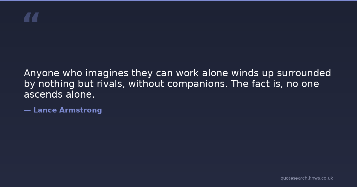 Anyone who imagines they can work alone winds up surrounded by nothing but rivals, without companions. The fact is, no one ascends alone.