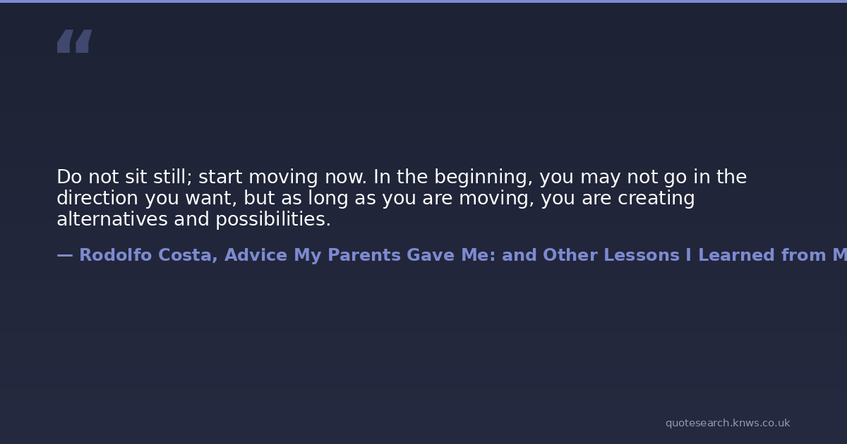 Do not sit still; start moving now. In the beginning, you may not go in the direction you want, but as long as you are moving, you are creating alternatives and possibilities.