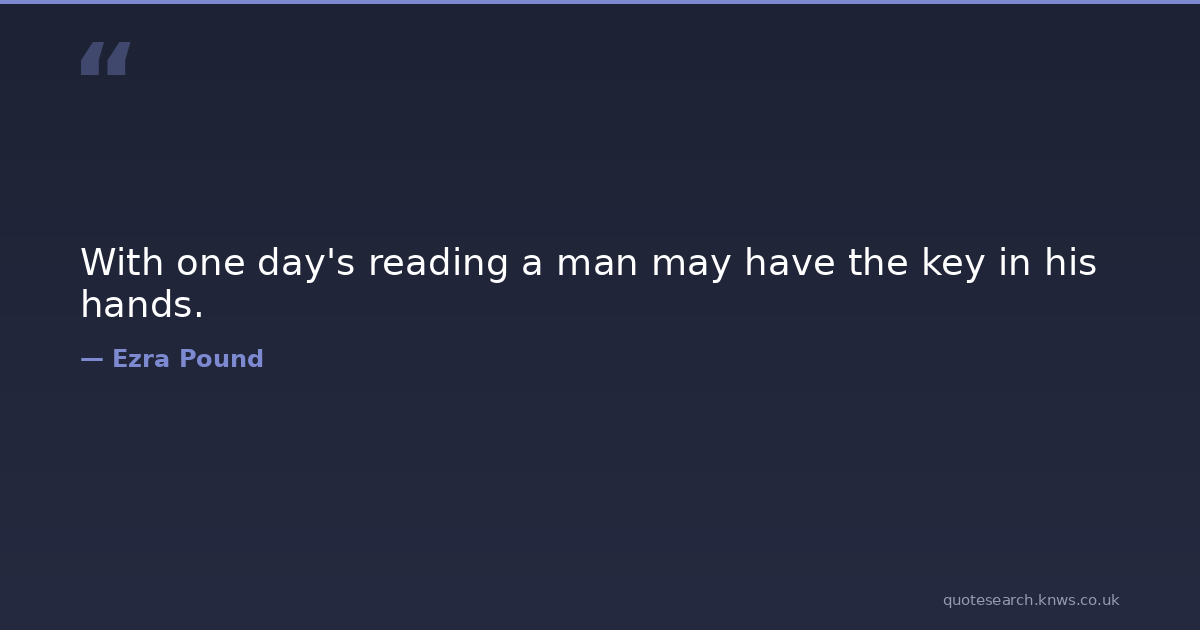 With one day's reading a man may have the key in his hands.